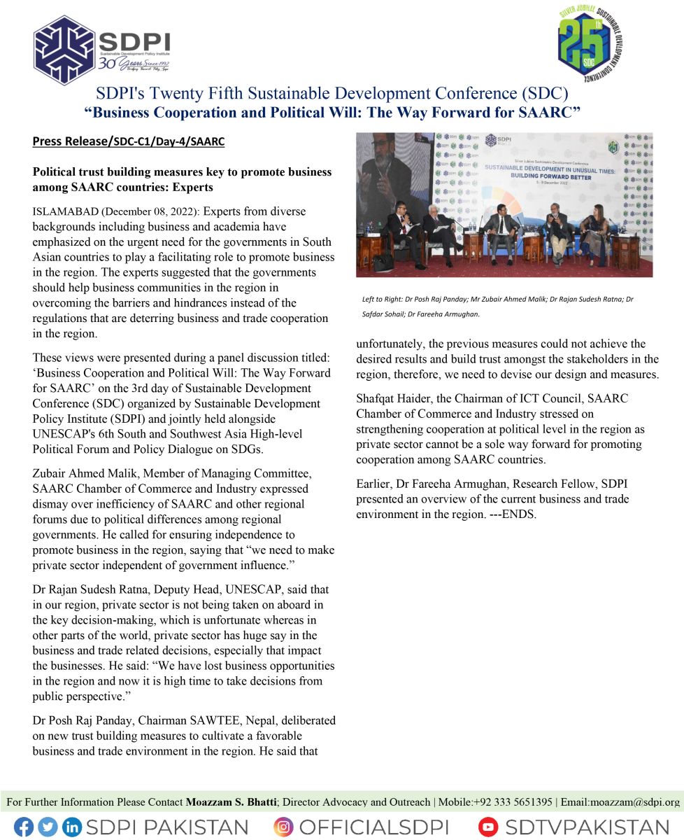 Political trust building measures key to promote business among SAARC countries Experts